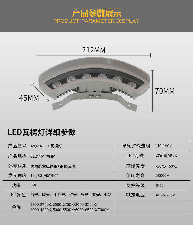 產品功率:3W;5W;6W;